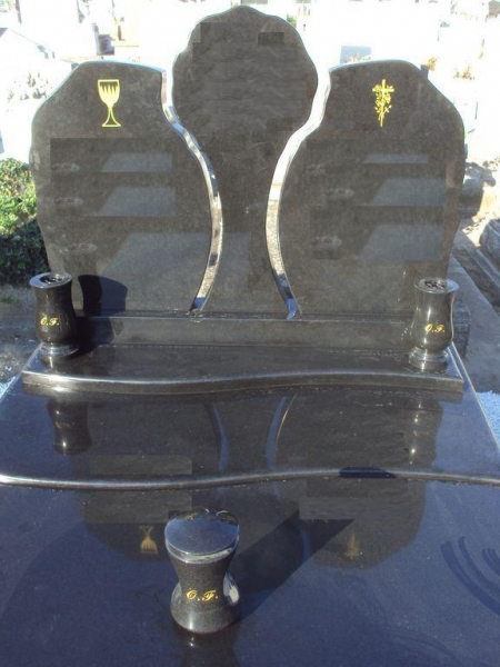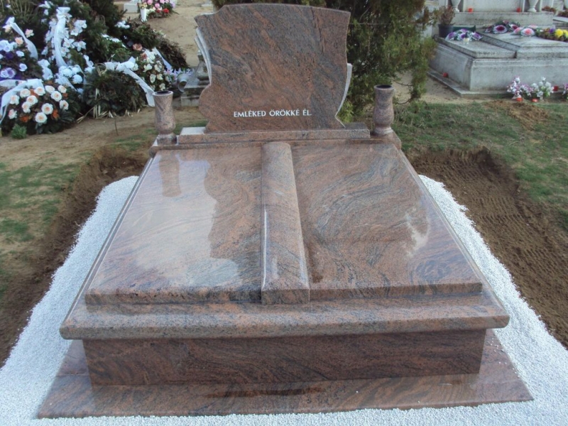 Verde San Francisco dupla gránit síremlék, sprengelt emlékkel, fedlapján ültetőrésszel és süllyesztett vázakarikákkal
